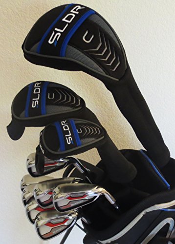 Brand New complete set of all the best TaylorMade Golf Clubs. Set features Taylor Made AeroBurner Irons 4,5,6,7,8,9,PW all with Taylor Made Stiff Steel Shafts. TaylorMade SLDR-C Ti Driver, TaylorMade SLDR-C 3 Wood, and TaylorMade SLDR-C #3 Hybrid (All with Graphite Stiff Flex Shafts for maximum distance). Includes a OneShot Insert Face Putter, and a Dual Strap and Automatic Stand Bag. Over $2500 retail value. Here's your chance to get high quality big name clubs at a great price. The driver, wood, hybrid, and putter all come with headcovers. The bag has the dual shoulder straps (so you can carry your bag like a backpack, which makes walking much easier and more enjoyable). It is also a very versatile lightweight bag that works well with a cart too... comes with rain hood as well.
